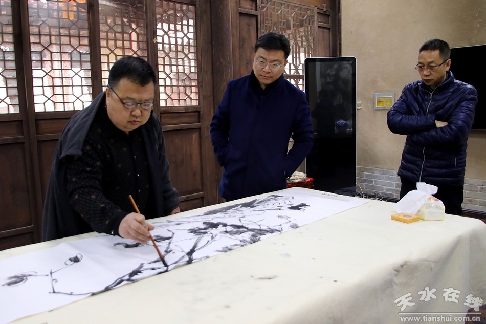 1月28日,農(nóng)歷年大年初一,天水市委常委、副市長(zhǎng)李曉東來(lái)到天水66號(hào)文化創(chuàng)意園與文化創(chuàng)客中國(guó)著名國(guó)畫大師吳悅石工作室專業(yè)畫家王平先生及66號(hào)工作人員一起過(guò)年。