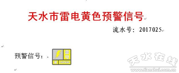 天水市氣象臺2017年4月12日19時30分發(fā)布雷電黃色預警信號: