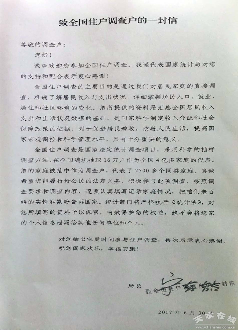 今年8~11國家統(tǒng)計(jì)局天水調(diào)查隊(duì)將開展新一輪住戶調(diào)查樣本輪換工作,并將在全市通過PPS抽樣方法,抽選1050戶家庭作為2018年至2020年調(diào)查樣本參與住戶調(diào)查記賬工作。摸底調(diào)查期間,將有天水調(diào)查隊(duì)工作人員持調(diào)查證入戶填報(bào)摸底調(diào)查問卷,希望廣大居民充分理解和密配合。