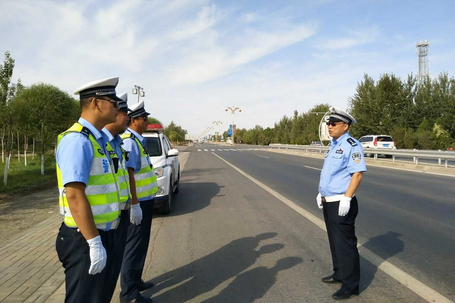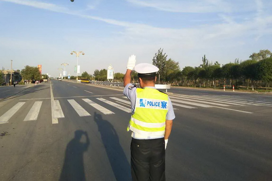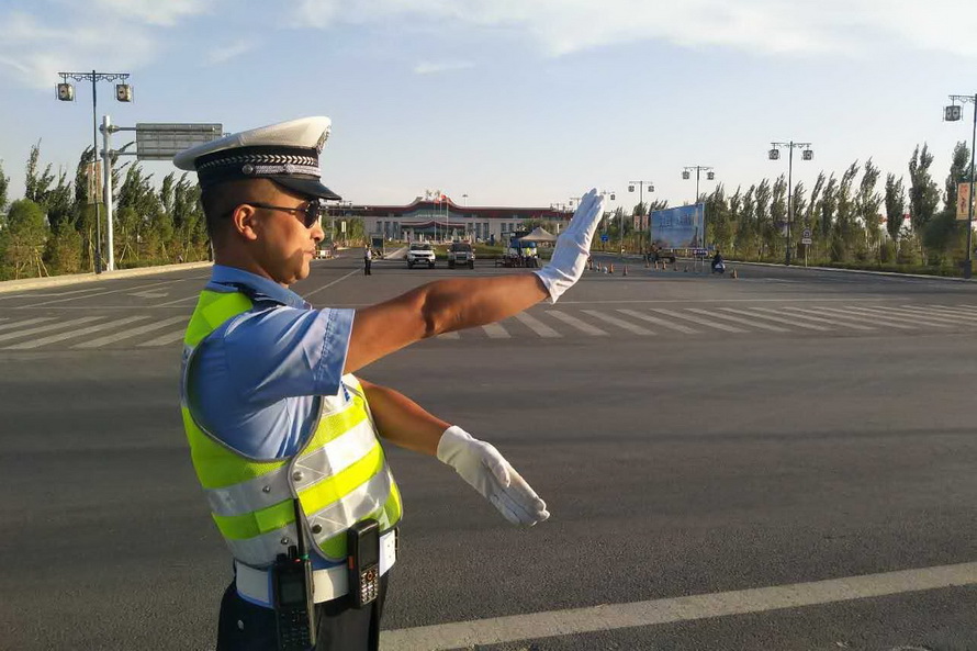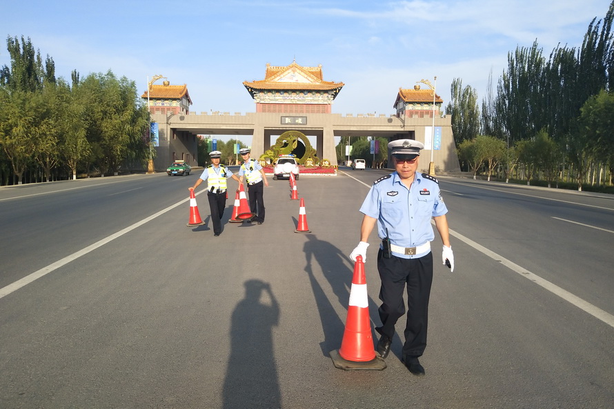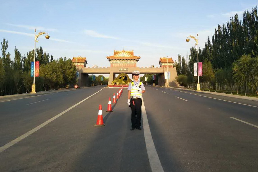 演練當日,李靜宏同志帶領3個勤務小組的9名特勤隊員準時到達指定地點,按照文博會交通安保組調整后的勤務方案,在敦煌飛機場正門口、火車站進出口、314省道老收費站西路口執(zhí)勤點部暑警力。全體隊員嚴格遵守道路執(zhí)勤執(zhí)法工作規(guī)范,統(tǒng)一著裝、帶齊裝備,經擺放反光錐桶、檢查隔離設施后,快速進入各自執(zhí)勤崗點,在當?shù)亟煌▌駥T的支持配合下,全面開展特勤保障工作。特勤隊員克服晝夜溫差大、日間紫外線強、夜間視距差等實際困難,及時清理所轄道路兩側亂停亂放車輛,積極制止電動車、摩托車違法載人和逆向行駛,嚴格管控貨車、農用車進入城區(qū),并引導社會車輛駛出文博車道通行,以堅實的工作作風圓滿完成了后兩次演練的各項科目內容,為屆時做好今年敦煌文博會“一會兩壇”期間各項勤務工作奠定了基礎。