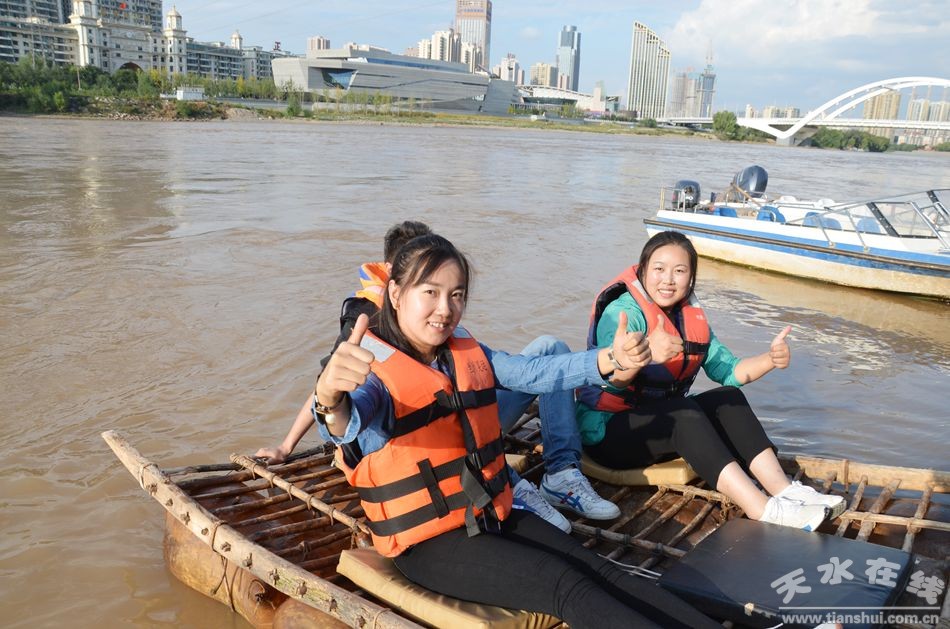 (在蘭州水車博覽園體驗羊皮筏子)