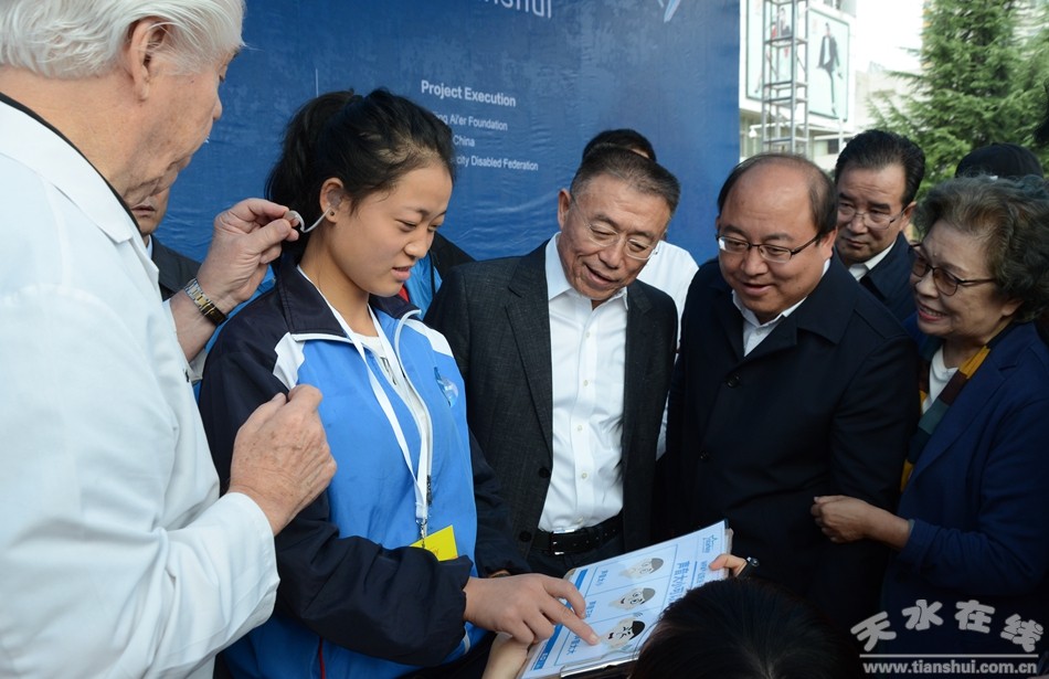 天水市委書(shū)記王銳宣布項(xiàng)目啟動(dòng)。美國(guó)斯達(dá)克聽(tīng)力基金會(huì)創(chuàng)始人、首席執(zhí)行官比爾·奧斯汀,中國(guó)市長(zhǎng)協(xié)會(huì)顧問(wèn)、北京愛(ài)爾公益基金會(huì)創(chuàng)會(huì)會(huì)長(zhǎng)陶斯亮,中國(guó)市長(zhǎng)協(xié)會(huì)副秘書(shū)長(zhǎng)、北京愛(ài)爾公益基金會(huì)楊捷,甘肅省殘聯(lián)副理事長(zhǎng)蔣錄基,斯達(dá)克中國(guó)公司董事、總經(jīng)理胡曉宇,天水市委常委、副市長(zhǎng)宮輝出席啟動(dòng)儀式。