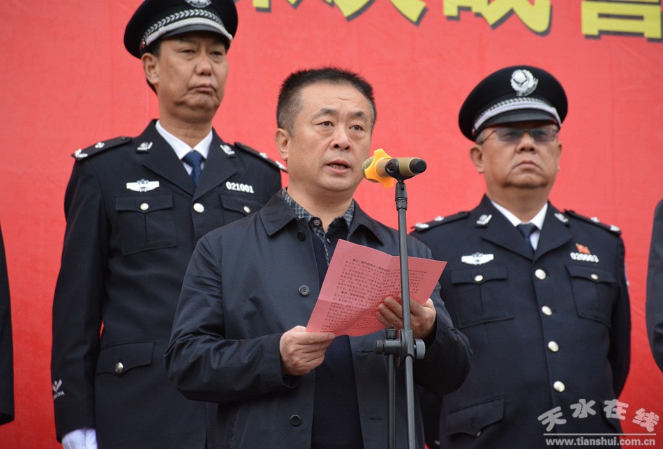 市委常委、秘書長(zhǎng)、政法委書記蔣曉強(qiáng)在動(dòng)員講話中強(qiáng)調(diào),公安機(jī)關(guān)是打擊犯罪、維護(hù)穩(wěn)定的主力軍,責(zé)任重大必須勇于擔(dān)當(dāng),軍令如山不可絲毫動(dòng)搖。要始終牢記習(xí)近平總書記“對(duì)黨忠誠(chéng)、服務(wù)人民、執(zhí)法公正、紀(jì)律嚴(yán)明”的總要求和“抓重點(diǎn)、抓關(guān)鍵、抓薄弱環(huán)節(jié),有效防控各類風(fēng)險(xiǎn)”的重要指示精神,切實(shí)提高政治站位,增強(qiáng)“四個(gè)意識(shí)”,強(qiáng)化責(zé)任擔(dān)當(dāng),認(rèn)真扎實(shí)組織開展好嚴(yán)打整治專項(xiàng)行動(dòng),聚焦問(wèn)題,精準(zhǔn)發(fā)力,查找漏洞、消除隱患,進(jìn)一步加大打防管控力度,依法嚴(yán)厲打擊“黑拐槍”“黃賭毒”“盜搶騙”等群眾深惡痛絕的違法犯罪行為,敢于動(dòng)真碰硬、深挖幕后黑手,筑牢層層過(guò)濾、立體防衛(wèi)的安全防線,以最強(qiáng)黨性鑄就忠誠(chéng)之盾、最嚴(yán)措施織密安全之網(wǎng)、最硬作風(fēng)恪守維穩(wěn)之責(zé),全力維護(hù)全市社會(huì)大局安全穩(wěn)定。
