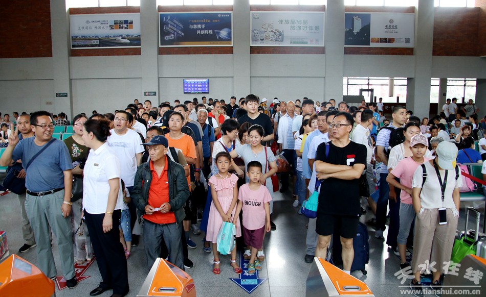 (旅客在天水站站臺留影)