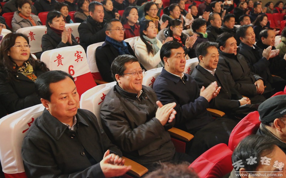 12月14日晚,由中華人民共和國(guó)文化和旅游部主辦,文化和旅游部藝術(shù)司、甘肅省文化廳承辦,張掖市七一劇團(tuán)演藝公司創(chuàng)排出品的大型秦腔現(xiàn)代戲《民樂(lè)情》在天水市秦州大劇院進(jìn)行“助力扶貧攻堅(jiān)”巡演。市委副書記趙衛(wèi)東,市人大常委會(huì)副主任蒲朝暉、宋建平,副市長(zhǎng)逯克宗,市政協(xié)副主席蘇定武,市政協(xié)黨組成員賈忠慧觀看了演出。
