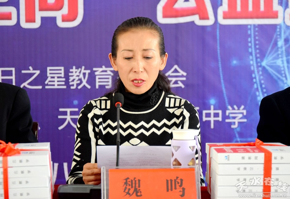 (天水市人大常委會(huì)副主任、民盟天水市委會(huì)主委安志宏為明日之星教育基金會(huì)頒發(fā)榮譽(yù)證書)