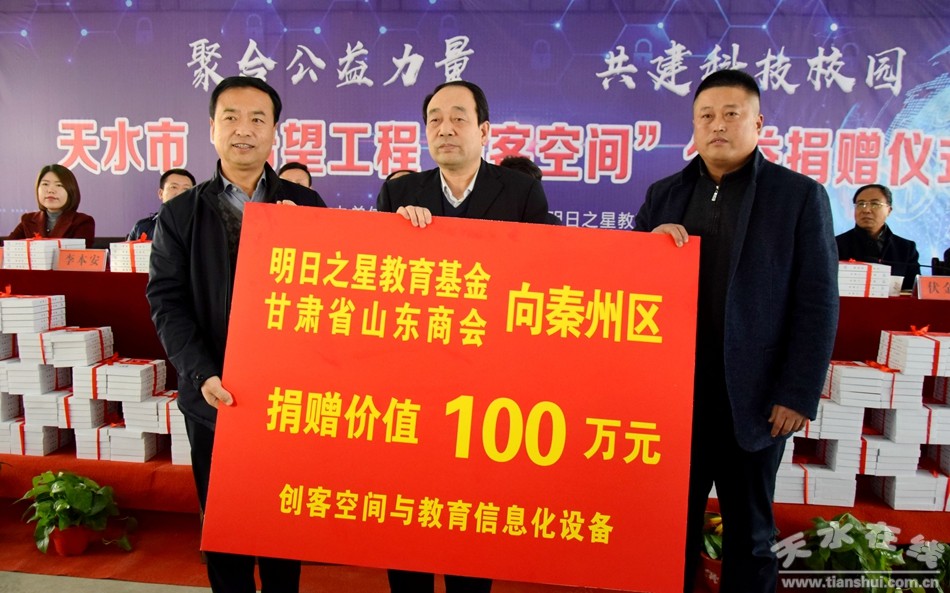 “希望工程 創(chuàng)客空間”公益捐贈(zèng)活動(dòng)是明日之星教育基金會(huì)發(fā)起,面向貧困地區(qū)中、小學(xué)校和學(xué)生的捐資助學(xué)項(xiàng)目。將為全省14個(gè)市州80個(gè)縣區(qū)義務(wù)教育階段的中小學(xué)捐贈(zèng)價(jià)值3200余萬元的教育教學(xué)資源。經(jīng)民盟甘肅省委、天水市委前期聯(lián)系引進(jìn)和洽談對(duì)接,達(dá)成全市教育資源捐贈(zèng)協(xié)議。