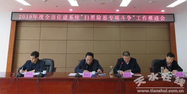 為深入貫徹落實(shí)省委政法工作會(huì)議和省、市掃黑除惡專項(xiàng)斗爭(zhēng)工作約談會(huì)議精神,全面安排部署住建系統(tǒng)掃黑除惡專項(xiàng)斗爭(zhēng),2月27日下午,天水市建設(shè)局召開2019年度掃黑除惡專項(xiàng)斗爭(zhēng)推進(jìn)會(huì)。出席會(huì)議的局領(lǐng)導(dǎo)有市建設(shè)局黨組副書記張?zhí)鞂,市建設(shè)局副局長(zhǎng)、綜合執(zhí)法局局長(zhǎng)胡亞東,市建設(shè)局副局長(zhǎng)洪富強(qiáng);各縣區(qū)建設(shè)局、城市管理執(zhí)法局、房管局、兩區(qū)市場(chǎng)建設(shè)中心、兩區(qū)建筑施工企業(yè)、房地產(chǎn)開發(fā)管理企業(yè)負(fù)責(zé)人共150余人參加了會(huì)議。會(huì)議由市建設(shè)局副局長(zhǎng)洪富強(qiáng)主持。