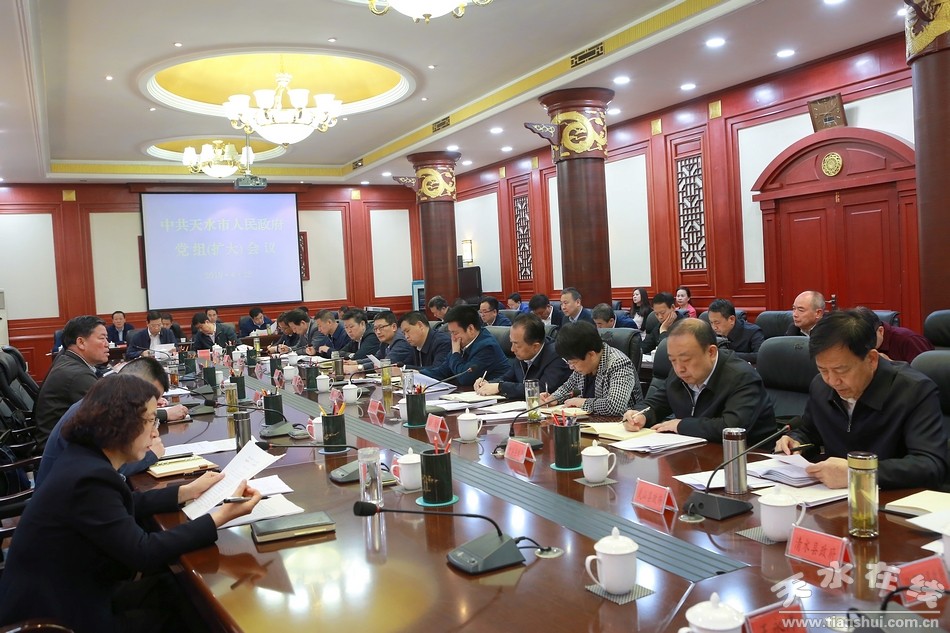 4月22日,天水市政府黨組書記、市長王軍主持召開市政府黨組(擴(kuò)大)會(huì)議。傳達(dá)學(xué)習(xí)習(xí)近平總書記在重慶考察并主持召開解決“兩不愁三保障”突出問題座談會(huì)的有關(guān)精神和省委常委擴(kuò)大會(huì)議精神,以及省委書記林鐸在脫貧攻堅(jiān)專項(xiàng)巡視整改工作電話會(huì)議結(jié)束后的講話和近期省、市主要領(lǐng)導(dǎo)關(guān)于脫貧攻堅(jiān)工作的有關(guān)批示精神;傳達(dá)省水污染領(lǐng)導(dǎo)小組辦公室關(guān)于2019年一季度未達(dá)標(biāo)地表水考核斷面的預(yù)警通知,安排部署近期環(huán)保整治工作;傳達(dá)省政府第49次常務(wù)會(huì)議精神,通報(bào)一季度全市經(jīng)濟(jì)運(yùn)行情況和全市及各縣區(qū)主要經(jīng)濟(jì)指標(biāo)完成情況。黨組成員劉驍、郝文杰、何東、王燕、王祥林參加。