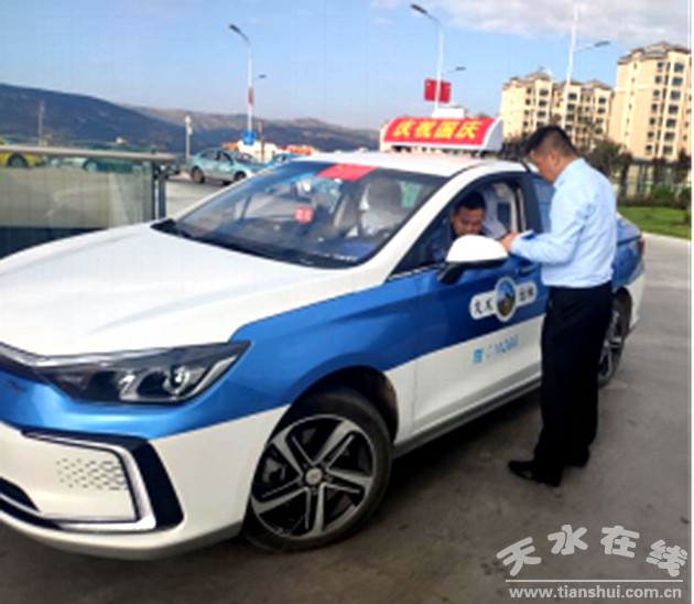 在國慶來臨之際,公司負(fù)責(zé)人劉剛親自帶隊(duì)上路稽查我公司出租車行車情況,進(jìn)行逐車查逐人核,主要對新能源純電動(dòng)出租車進(jìn)行排查,確保行車安全、車輛衛(wèi)生、駕駛員形象、文明用語“您好,謝謝,再見”的使用,著力打造行業(yè)服務(wù)標(biāo)桿,樹立天水出租車行業(yè)新形象新風(fēng)貌,純電動(dòng)出租車不僅車內(nèi)噪音小,而且沒有燃油異味,低碳環(huán)保,也為提升我市環(huán)境質(zhì)量做出了努力。