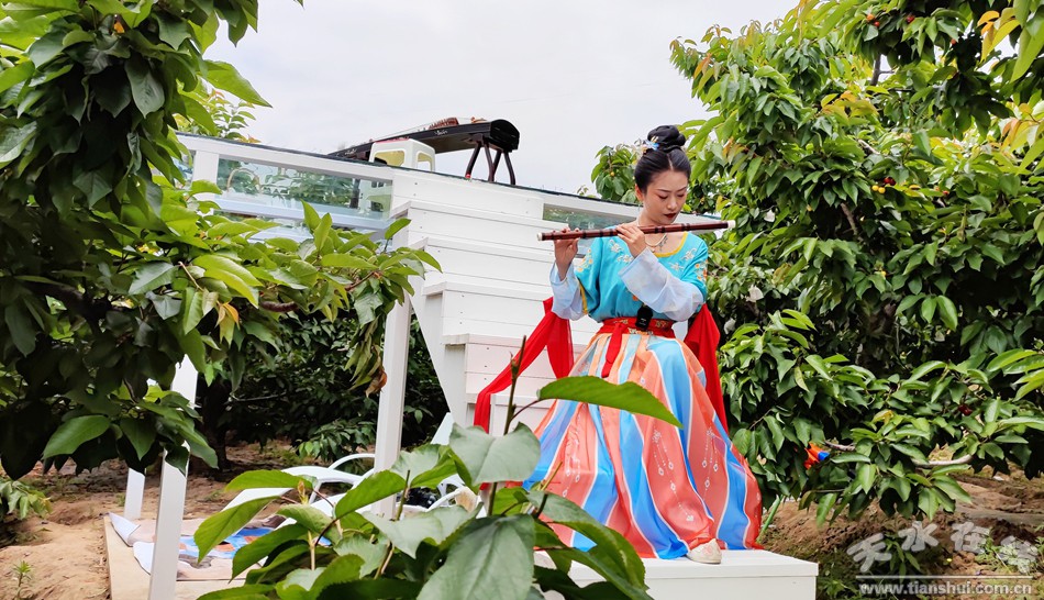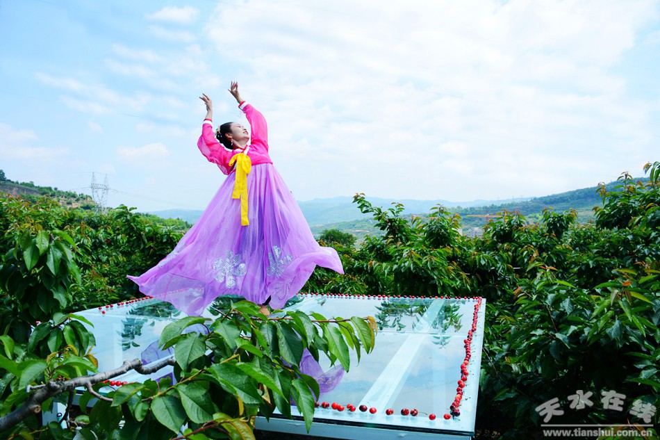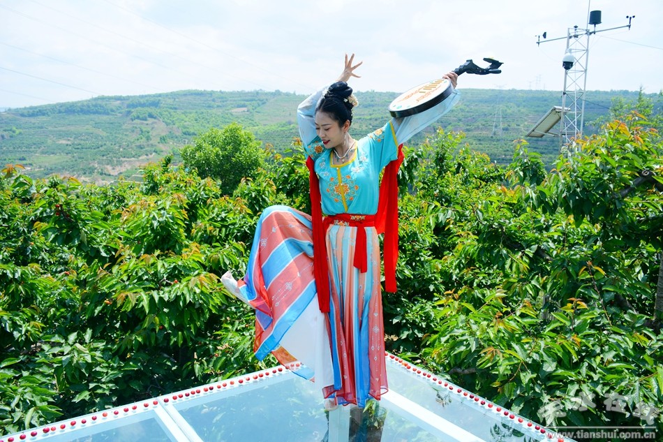 5月23日,天水市秦州區(qū)玉泉鎮(zhèn)煙鋪村的上千畝櫻桃已經(jīng)陸續(xù)成熟,漫山遍野的紅燈、美早、拉賓斯、早大果、黑珍珠等,一個(gè)個(gè)香甜的名字,香甜了整個(gè)天水城。當(dāng)日,天水在線主播萌萌變身“櫻桃公主”打卡煙鋪櫻桃園,宣傳推介“煙鋪大櫻桃”。