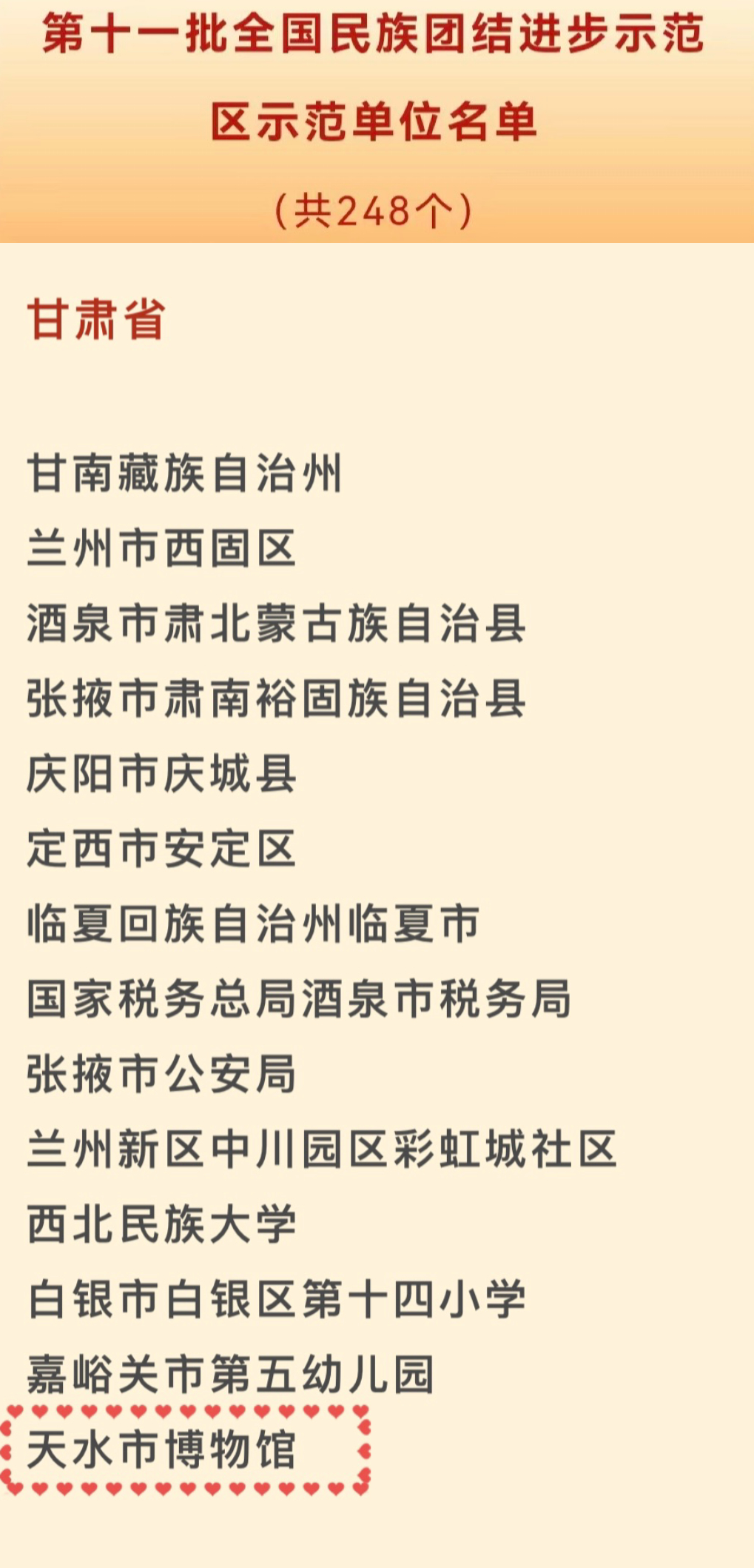 2024年,天水市博物館被認(rèn)定為第三批國家級(jí)文明旅游示范單位;全國民族團(tuán)結(jié)進(jìn)步示范單位;一人被表彰為第十批甘肅省優(yōu)秀專家;兩人獲得“慶祝中華人民共和國成立75周年”全省博物館紀(jì)念館講解員大賽博物館組優(yōu)秀獎(jiǎng);三人獲得甘肅省第九屆科普講解大賽獎(jiǎng)項(xiàng);榮獲甘肅省非遺及文創(chuàng)精品展獎(jiǎng)項(xiàng)。