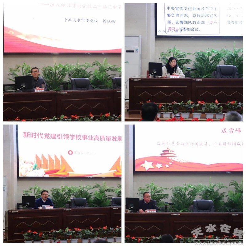 此次培訓(xùn)采取專題輔導(dǎo)、個(gè)人自學(xué)、交流發(fā)言等方式,全面深入學(xué)習(xí)黨的二十屆三中全會(huì)精神。期間,中共天水市委講師團(tuán)成員、市委黨校哲學(xué)與科學(xué)社會(huì)主義教研部主任侯強(qiáng)強(qiáng),中共天水市委宣講團(tuán)成員、中共天水市委黨校生態(tài)與文化教研部主任呂曉華,中共天水市委政策研究室副主任成雪峰分別圍繞進(jìn)一步全面深化改革推進(jìn)中國(guó)式現(xiàn)代化、學(xué)習(xí)貫徹習(xí)近平文化思想和習(xí)近平總書記視察甘肅重要講話重要指示精神等內(nèi)容作專題輔導(dǎo)報(bào)告,報(bào)告主題鮮明、內(nèi)容豐富,理論與實(shí)際相結(jié)合,能夠幫助參訓(xùn)學(xué)員進(jìn)一步做到學(xué)以致用、融會(huì)貫通,凝聚起推動(dòng)學(xué)校高質(zhì)量發(fā)展的強(qiáng)大合力。