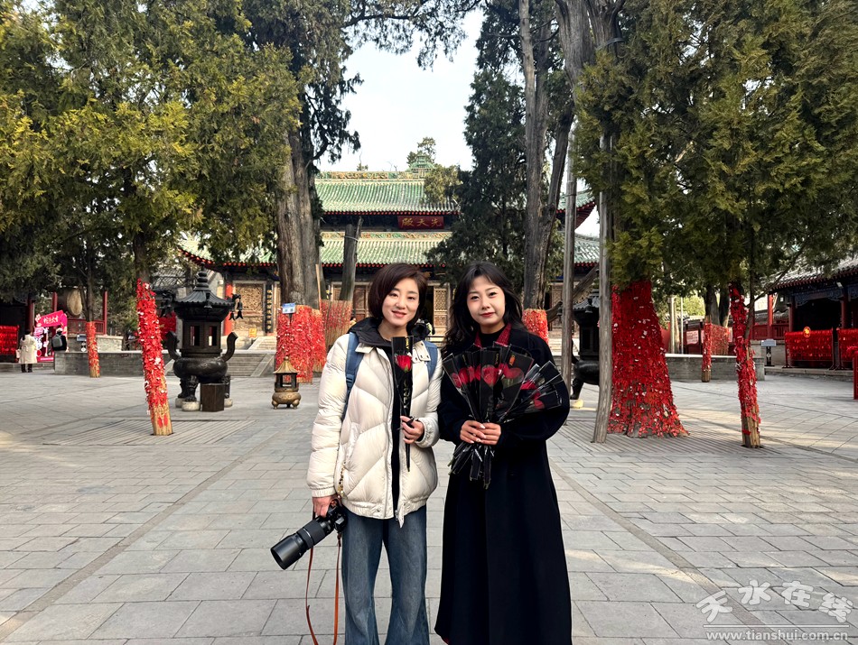 ▲天水在線向打卡天水伏羲廟的女游客贈送玫瑰花