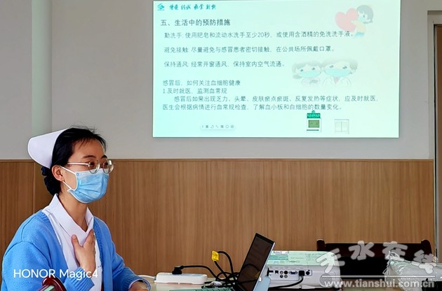活動(dòng)伊始,護(hù)士王亞娟以“放化療患者骨髓抑制的護(hù)理”為題,用通俗易懂的語(yǔ)言和真實(shí)案例,為患者講解放化療后血象管理的核心要點(diǎn)。