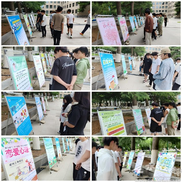 現(xiàn)場(chǎng)擺放20余塊心理健康主題展板,內(nèi)容涵蓋情緒管理、壓力應(yīng)對(duì)、人際關(guān)系、自我關(guān)懷、時(shí)間管理、睡眠健康、職業(yè)規(guī)劃等,為同學(xué)們提供了實(shí)用的心理調(diào)適指南。