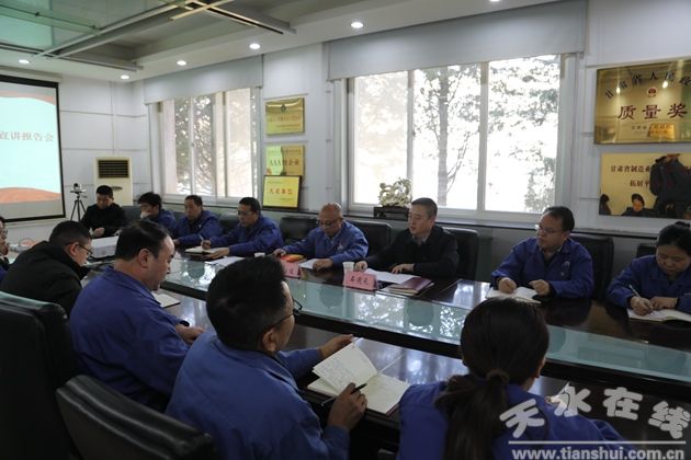 為深入學(xué)習(xí)貫徹黨的二十屆四中全會精神,統(tǒng)一思想、凝聚共識,12月24日,市國資委副主任石茂元專程來到天水星火機床有限責(zé)任公司,為公司黨員干部作了一場主題鮮明、內(nèi)容豐富的宣講報告。會議由公司董事長蔣俊主持,公司領(lǐng)導(dǎo)胡慶峰、張巨宏及黨員干部代表共計20余人現(xiàn)場聆聽了報告。