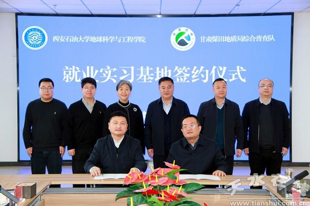 雙方代表共同簽訂了《就業(yè)實習(xí)基地合作協(xié)議》,并一同為“西安石油大學(xué)就業(yè)實習(xí)基地”揭牌。會后,在普查隊班子成員的陪同下,西安石油大學(xué)地球科學(xué)與工程學(xué)院來訪人員參觀了普查隊隊史陳列室。
