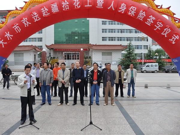 9月7日,武山縣寧遠廣場人頭攢動,掌聲陣陣,天水市1000多名赴疆拾花工暨人身保險簽字儀式在這里隆重舉行。甘肅省勞務(wù)工作辦公室主任劉保健,天水市勞動和社會保障局副局長蔡小林、勞務(wù)工作辦公室主任汪茂林,武山縣人大副主任麻保祿、政府副縣長紀永安、政協(xié)副主席薛東輝、勞動和社會保障局負責人以及各縣區(qū)勞務(wù)工作辦公室主任參加了歡送儀式。