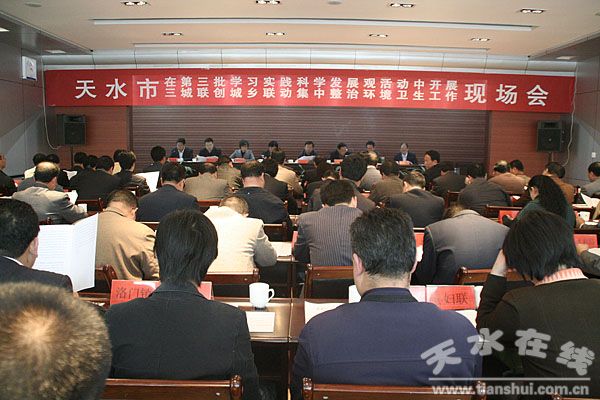 10月21日,全市在第三批學(xué)習(xí)實(shí)踐科學(xué)發(fā)展觀活動(dòng)中開(kāi)展三城聯(lián)創(chuàng)城鄉(xiāng)聯(lián)動(dòng)集中整治工作現(xiàn)場(chǎng)會(huì)在武山召開(kāi)。天水市委常委、組織部長(zhǎng)楊繼軍,天水市人大常委會(huì)副主任申積來(lái),天水市政府副市長(zhǎng)雷鳴,天水市政協(xié)副主席陶元德,天水市政府辦、建設(shè)局、衛(wèi)生局、旅游局、環(huán)保局、綜合行政執(zhí)法局、交通局、規(guī)劃局、財(cái)政局、民政局、教育局、廣播電視局、農(nóng)業(yè)局、水利局、林業(yè)局、畜牧局、婦聯(lián)、總工會(huì)、團(tuán)市委等相關(guān)單位負(fù)責(zé)人,各縣(區(qū))縣(區(qū))長(zhǎng)、組織部長(zhǎng),天水市委學(xué)習(xí)實(shí)踐活動(dòng)辦公室和一、二、三巡回檢查組及市三城聯(lián)創(chuàng)辦公室負(fù)責(zé)人,共150多人參加了會(huì)議。