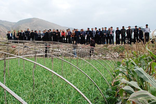 考察團(tuán)先后深入武山縣洛門鎮(zhèn)農(nóng)業(yè)綜合開(kāi)發(fā)項(xiàng)目區(qū)、文家寺村、蔬菜批發(fā)市場(chǎng)和灘歌鎮(zhèn)黑池殿村等地,就蔬菜產(chǎn)業(yè)從園區(qū)建設(shè)、基礎(chǔ)設(shè)施配套、市場(chǎng)建設(shè)、技術(shù)培訓(xùn)基地建設(shè)等方面進(jìn)行了深入細(xì)致的參觀考察。武山縣蔬菜局負(fù)責(zé)人現(xiàn)場(chǎng)介紹了全縣蔬菜產(chǎn)業(yè)發(fā)展工作思路、奮斗目標(biāo)、具體措施和工作成效。