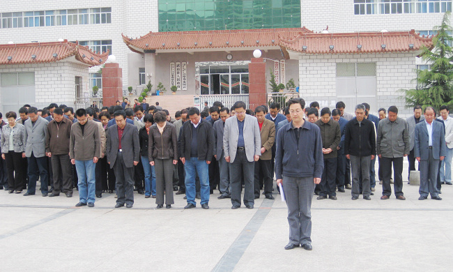 哀悼活動舉行了莊嚴的降半旗儀式,在儀式后,全體領(lǐng)導(dǎo)干部神情肅穆,為在青海玉樹地震中不幸罹難的同胞低首默哀3分鐘。