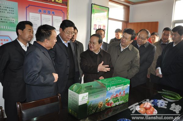 蔬菜產(chǎn)業(yè)是武山縣的一項(xiàng)主導(dǎo)產(chǎn)業(yè)。近年來(lái),武山縣在省、市的大力關(guān)心和支持下,縣委、縣政府按照“建基地、活流通、扶龍頭、創(chuàng)品牌”的發(fā)展思路,充分發(fā)揮縣域土壤肥沃、水資源豐富、交通便利的自然資源優(yōu)勢(shì),采取政府推動(dòng)、科技帶動(dòng)、市場(chǎng)拉動(dòng)、服務(wù)聯(lián)動(dòng)、產(chǎn)業(yè)互動(dòng)等措施,蔬菜產(chǎn)業(yè)得到了較快發(fā)展,有效地促進(jìn)了農(nóng)業(yè)增效、農(nóng)民增收。到2010年底,蔬菜種植面積達(dá)到28萬(wàn)畝,其中:日光溫室2萬(wàn)畝,普通棚9萬(wàn)畝,正茬地膜蔬菜7萬(wàn)畝,復(fù)種6萬(wàn)畝,總產(chǎn)量達(dá)到73萬(wàn)噸,總產(chǎn)值6.8億元。蔬菜已成為武山農(nóng)民增加收入的重要經(jīng)濟(jì)來(lái)源之一,蔬菜收入占到農(nóng)民人均純收入的43%。韭菜、胡蘿卜、甘藍(lán)、西葫蘆、番茄、萵筍、洋蔥、蒜苗、洋芋等12類蔬菜和蠶豆、蕓豆、箭豆、扁豆、胡麻等21個(gè)產(chǎn)品被農(nóng)業(yè)部認(rèn)定為國(guó)家A級(jí)綠色食品和有機(jī)食品。武山縣先后被命名為“中國(guó)韭菜之鄉(xiāng)”、全國(guó)綠色農(nóng)業(yè)示范縣、全國(guó)蔬菜標(biāo)準(zhǔn)園創(chuàng)建示范縣、全省蔬菜標(biāo)準(zhǔn)園創(chuàng)建重點(diǎn)縣。鹿心社興致勃勃地走進(jìn)了灘歌鎮(zhèn)黑池殿村蔬菜園區(qū),通過(guò)實(shí)地查看、聽(tīng)取匯報(bào)、與種植專業(yè)戶交談,對(duì)蔬菜產(chǎn)業(yè)發(fā)展情況進(jìn)行了詳細(xì)調(diào)研,并叮囑市、縣領(lǐng)導(dǎo),要進(jìn)一步重視蔬菜新品種、新技術(shù)的引進(jìn)、試驗(yàn)、示范和推廣,提高蔬菜生產(chǎn)效益。