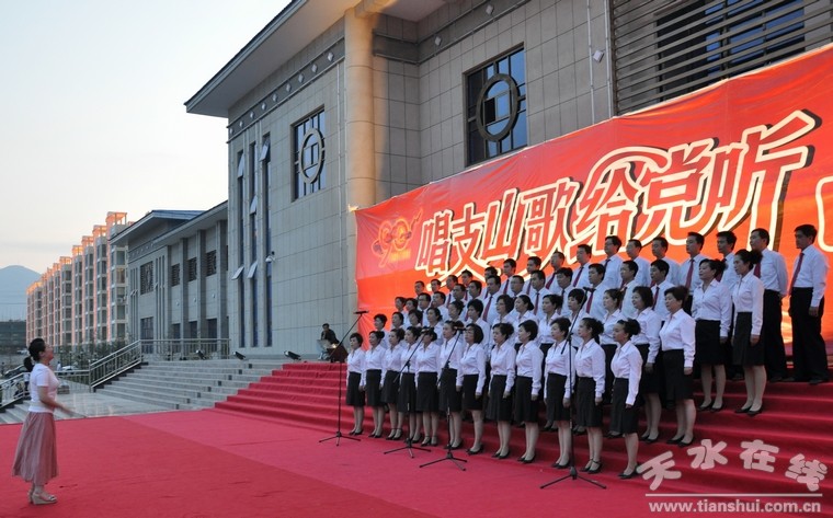 6月28日晚,武山縣群眾文化活動中心廣場歌聲飛揚(yáng),人頭攢動,歡聲、笑聲、掌聲響成一片,慶祝中國共產(chǎn)黨成立90周年——“唱支山歌給黨聽”紅歌合唱比賽在這里正式拉開帷幕。縣直機(jī)關(guān)單位和教育系統(tǒng)的18支代表隊(duì)1246名干部參加了演出,升溫了武山縣建黨90周年活動熱潮。