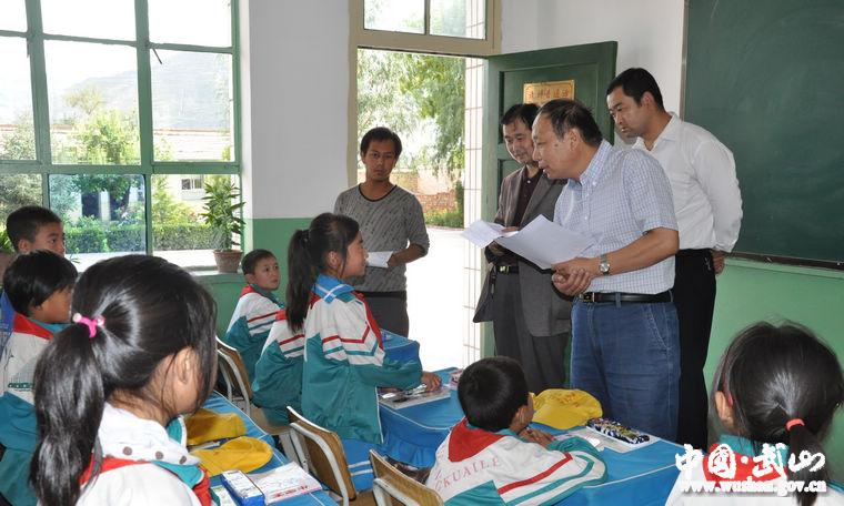 9月13日至14日,省監(jiān)察廳副廳長(zhǎng)、省“兩基”迎國(guó)檢第四督查評(píng)估組組長(zhǎng)馮慶昌一行,在天水市教育局副局長(zhǎng)范具福、張笑青的陪同下,到武山縣督查評(píng)估“兩基”工作?h委書記張建杰、縣人大主任王永宏、縣長(zhǎng)索鴻賓、縣政協(xié)主席頡衛(wèi)星、縣委常委陳鴻、縣人大常委會(huì)副主任令守義、副縣長(zhǎng)甘志國(guó)、縣政協(xié)副主席鐘玉紅及教體局負(fù)責(zé)人陪同督查。