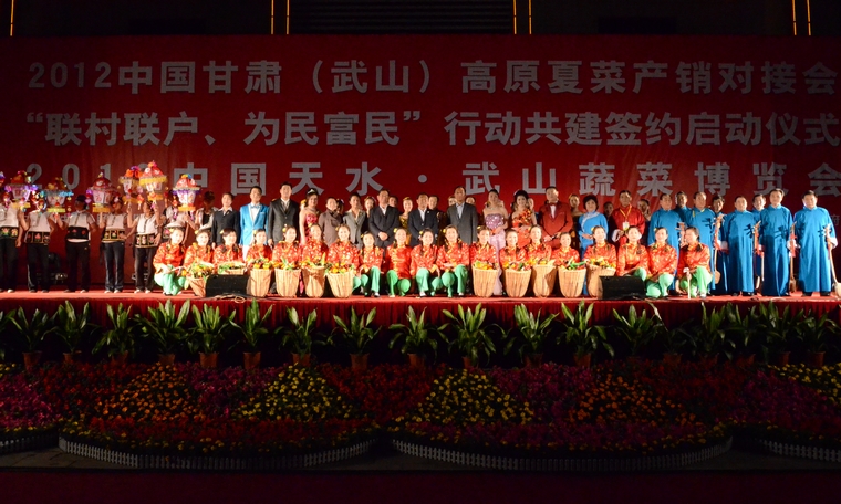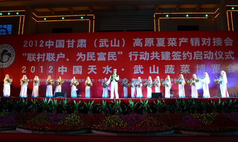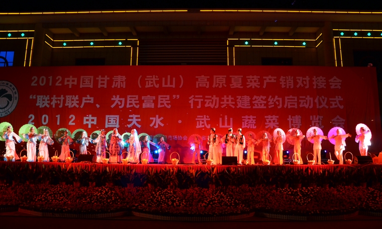 為了慶祝中國甘肅(武山)高原夏菜產(chǎn)銷對(duì)接會(huì)、“聯(lián)村聯(lián)戶、為民富民”行動(dòng)簽約啟動(dòng)儀式、2012中國天水•武山蔬菜博覽會(huì)成功舉辦,5月13日晚,由中共武山縣委、縣政府舉辦,天水市歌舞團(tuán)、張家川縣、秦安縣聯(lián)合演出的“2012中國天水·武山蔬菜博覽會(huì)”文藝晚會(huì)在縣群眾文化活動(dòng)中心廣場(chǎng)隆重舉行。