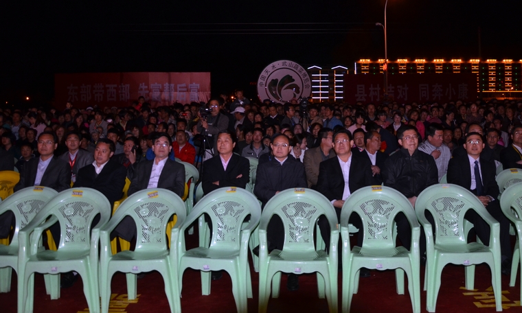 天水市副市長(zhǎng)王鈞、市委副秘書長(zhǎng)仙松濤、市政府副秘書長(zhǎng)孫曉、市農(nóng)業(yè)局局長(zhǎng)劉來生;參加2012中國甘肅(武山)高原夏菜產(chǎn)銷對(duì)接會(huì)、“聯(lián)村聯(lián)戶為民富民”行動(dòng)共建簽約啟動(dòng)儀式、中國天水•武山蔬菜博覽會(huì)的各級(jí)領(lǐng)導(dǎo)和來賓;武山縣四大組織全體領(lǐng)導(dǎo),離退休老干部,各鄉(xiāng)鎮(zhèn)、縣直各部門、駐縣各單位負(fù)責(zé)人,駐武部隊(duì)武警官兵、祁連山水泥有限責(zé)任公司代表,縣人大代表、政協(xié)委員、勞動(dòng)模范、優(yōu)秀共產(chǎn)黨員、種菜能手、環(huán)衛(wèi)工人代表,以及全縣廣大干部群眾2萬多人觀看了演出。