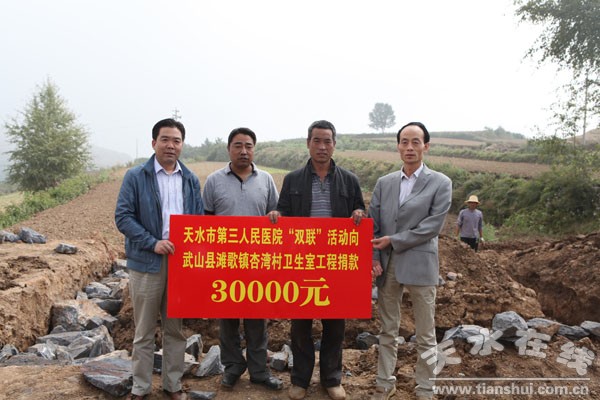 近日,天水市第三人民醫(yī)院干部職工積極響應上級為“聯(lián)村聯(lián)戶、為民富民”行動捐款的號召,迅速掀起了獻愛心、幫貧扶貧的捐款熱潮,在短短2天時間內(nèi),醫(yī)院共收到全院職工愛心捐助30000元,為聯(lián)村聯(lián)戶點——武山縣灘歌鎮(zhèn)杏灣村新建村衛(wèi)生室工程獻出一片愛心。