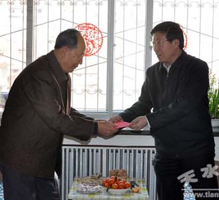 1月20日,武山縣委常委、紀(jì)委書記茍鐘靈深入鴛鴦鎮(zhèn)丁門村、包坪村、頡門村慰問農(nóng)村老黨員、困難群眾、五保戶、孤寡老人和殘疾人,為他們送去了黨和政府的溫暖及新春祝福。每到一處,茍鐘靈都與慰問對象親切交談,噓寒問暖,仔細(xì)詢問他們的身體狀況、收入來源、過節(jié)準(zhǔn)備情況以及生產(chǎn)、生活中存在的實(shí)際困難,勉勵他們要克服當(dāng)前困難,樹立信心,相信在黨和政府的幫扶支持及自身努力下,早日脫貧致富,并祝愿他們過上一個(gè)歡樂祥和的春節(jié)。