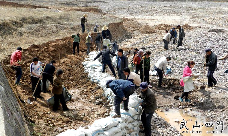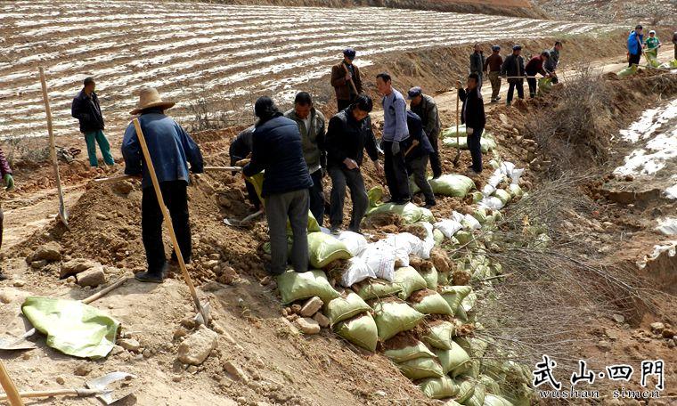 四門鎮(zhèn)南坪村干部群眾修筑攔水壩