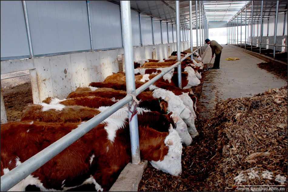 走進武山縣馬力鎮(zhèn)付門村的付門牛場,在一排新建的牛舍頂上,電焊和鋼架一次次的碰撞下,耀眼的火花在藍天的映襯下頻頻“綻放”,鏟車和運料車在寬廣的牛場中來回穿梭,工人們的身影隨鐵鍬的上下而擺動,還有幾十頭牛在新建好的牛舍下悠閑的吃著粉碎的玉米秸稈!斑@就是市上確定的武山通濟牧業(yè)有限責任公司付門牛場市級畜牧科學發(fā)展示范點!3月25日,該縣畜牧局人員對記者說。