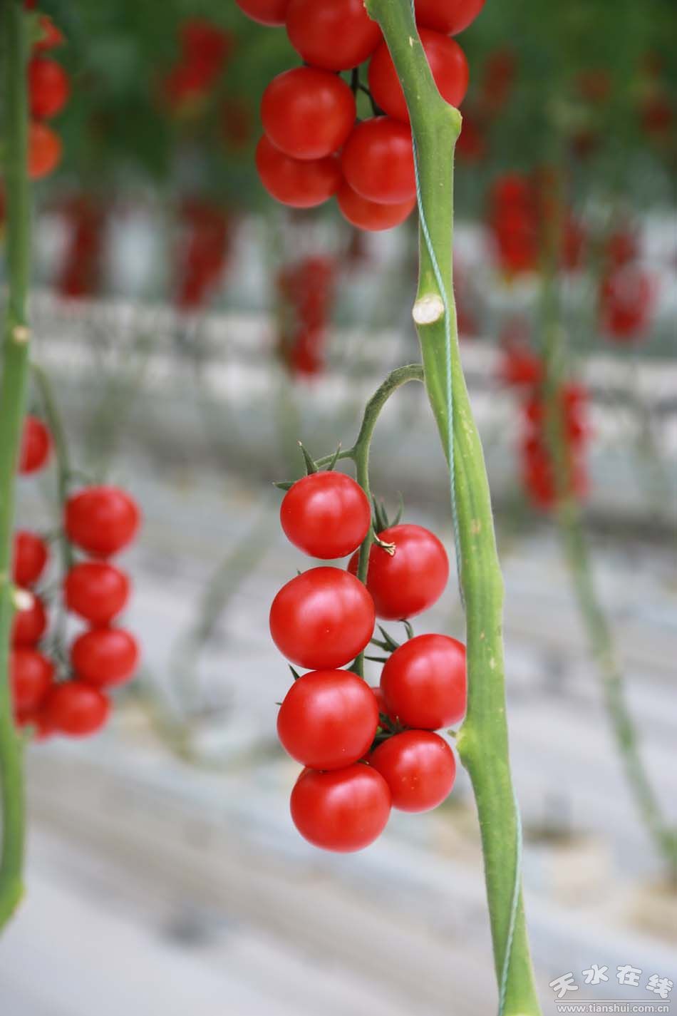 千禧(櫻桃番茄) 引自國(guó)外雜交一代種,植株長(zhǎng)勢(shì)極強(qiáng),生長(zhǎng)健壯,屬無(wú)限生長(zhǎng)型。株高150-200厘米,抗病性強(qiáng),適應(yīng)范圍廣。單穗可結(jié)14-25個(gè)果,單果重14克左右,果實(shí)圓球形,果肉肥厚,果色鮮紅艷麗,風(fēng)味甜美,不易裂果,產(chǎn)量高,采收期長(zhǎng)。