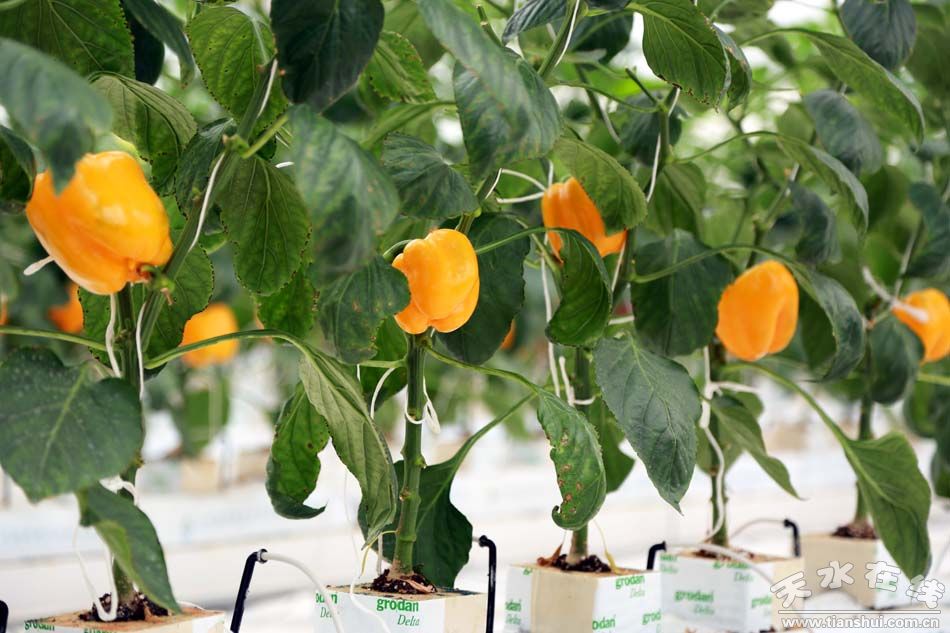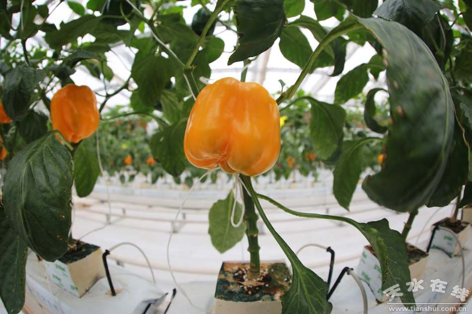 黃太極 植株開展度大,生長(zhǎng)能力強(qiáng),節(jié)間短,適應(yīng)于冬暖式溫室和早春大棚種植。燈籠形,成熟后轉(zhuǎn)黃色,生長(zhǎng)速度快,在正常溫度下,果長(zhǎng)8-10厘米,直徑9-10厘米左右,果實(shí)外表光亮,適應(yīng)綠果采收,也適應(yīng)黃果采收,商品性好,耐儲(chǔ)運(yùn)。單果重200-250克,抗煙草花葉病毒病。