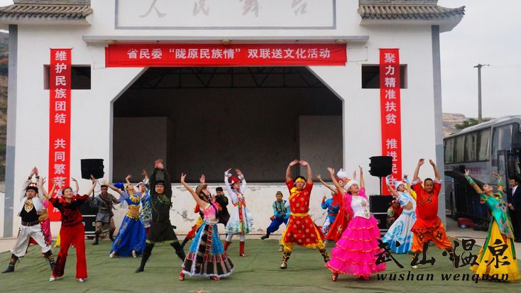 10月12日,省民委組織省民族歌舞團(tuán)全體演職員工赴山清水秀、景色宜人的武山縣溫泉鄉(xiāng)開展“隴原民族情”雙聯(lián)送文化活動(dòng)慰問(wèn)演出,為全鄉(xiāng)廣大群眾奉獻(xiàn)了一場(chǎng)精彩的文藝大餐。省民委副巡視員安生明,縣委常委、副縣長(zhǎng)李菊霞及溫泉鄉(xiāng)機(jī)關(guān)干部職工、鄉(xiāng)村群眾一同觀看了演出。