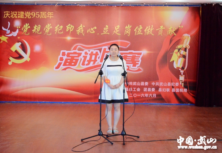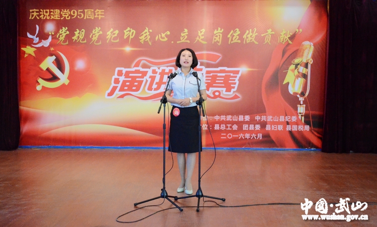 6月20日,“黨規(guī)黨紀(jì)印我心·立足崗位做貢獻(xiàn)”主題演講比賽(預(yù)賽)在武山縣國稅局五樓會(huì)議室舉行,該縣建黨95周年系列慶;顒(dòng)正式拉開序幕。全縣各鄉(xiāng)鎮(zhèn)及縣直各單位60名參加了預(yù)賽。