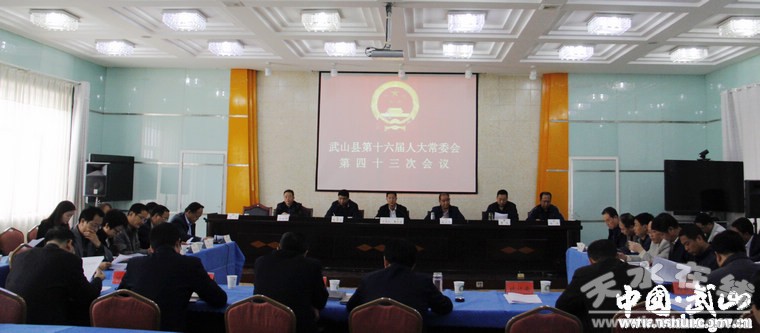 10月10日,武山縣人大常委會主任王永宏主持召開縣十六屆人大常委會第四十三次會議,副主任蔡永彥、張國華、康永、汪金祥、謝勇及部分委員出席會議?h政府副縣長聶衛(wèi)東,縣人民法院院長候選人劉強(qiáng)生,縣人民檢察院檢察長候選人張敬陽及政府辦、發(fā)改局、財(cái)政局、統(tǒng)計(jì)局、國稅局、地稅局、金融辦等單位負(fù)責(zé)人;縣人大辦公室、農(nóng)業(yè)農(nóng)村工委主任,四門、樺林兩鎮(zhèn)人大主席,縣人大常委會各工委、辦副主任列席會議。