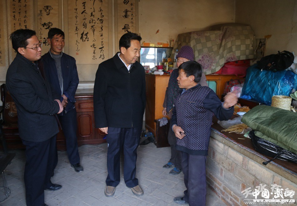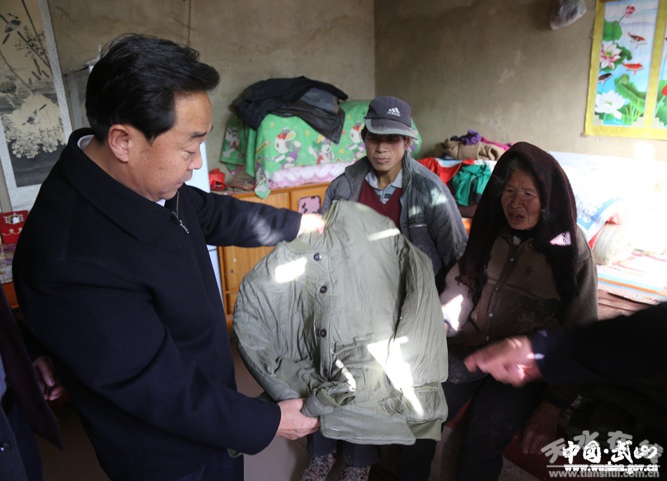 在五保老人張四林家中,索鴻賓詳細詢問老人身體狀況和生活起居情況,“您身體還好吧?家里水電都有嗎?想不想到縣城敬老院去?那里邊有暖氣、有電視,吃住都是免費的,過兩天讓鎮(zhèn)上的同志帶您去看一看……”。索鴻賓一一仔細詢問,話語間流露出對五保老人的親切關懷之情。他要求,鎮(zhèn)村兩級要高度重視五保老人的生活情況,規(guī)劃建好五保家園或安全住房,為每一位五保老人提供基本生活保障。