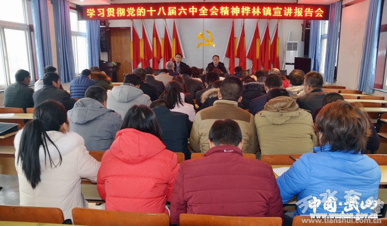 1月4日,武山縣副縣長(zhǎng)聶衛(wèi)東到樺林鎮(zhèn)宣講黨的十八屆六中全會(huì)精神。樺林鎮(zhèn)全體干部職工,各村駐村干部,村干部聆聽(tīng)了報(bào)告。