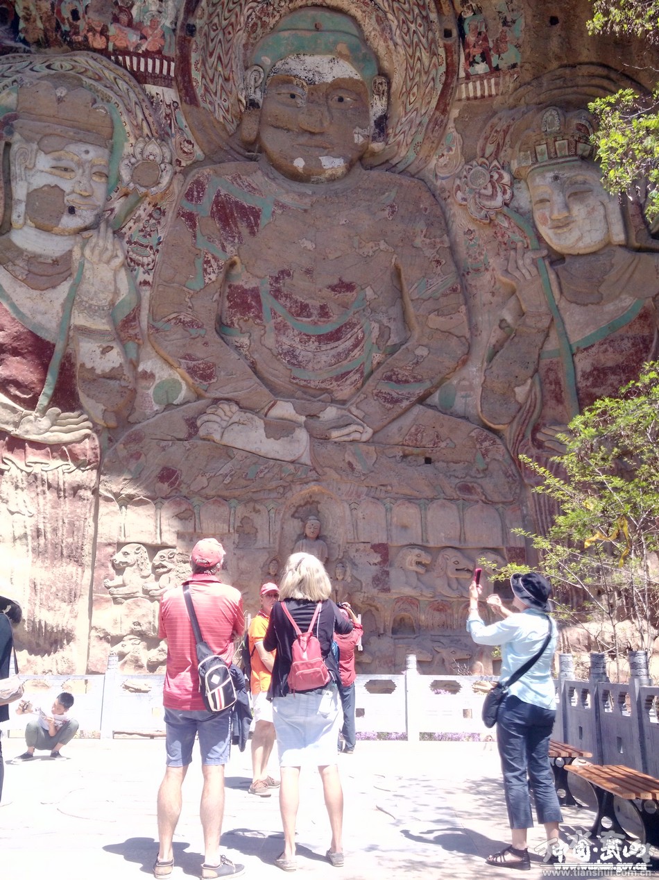 在國家4A級旅游景區(qū)水簾洞拉梢寺觀景臺上,18位澳洲友人被神勢肅穆、氣勢恢弘、莊嚴神圣的摩崖大佛深深震撼,他們雙手合十虔誠的祈禱世界和平、祖國繁榮昌盛、家人平安幸福。臨別前,他們向熱情的景區(qū)工作人員表示感謝并合影留念。