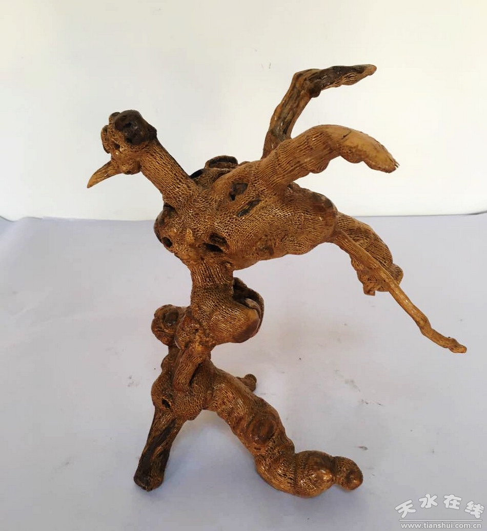 武山南部的馬力、灘歌、龍臺、四門、沿安、楊河、溫泉等鄉(xiāng)鎮(zhèn),地處小隴山林區(qū),森林茂密,樹種極多,自然枯朽之木隨處可見,有著豐富的根雕資源。許多根雕藝人和根藝愛好者,常常專程去森林和林緣地撿拾樹根、竹根、藤條、枯木,作為根雕材料。經(jīng)過選材、構思、定位、刮皮、雕刻、磨光、油漆等數(shù)十道工序,化腐朽為神奇,巧妙地利用根的自然形態(tài)上,如枝、須、洞、節(jié)、疤、紋理、色澤、態(tài)勢等,盡量使這些天然特點和聲韻,在已確定的藝術形象中得到合理的利用和充分的體現(xiàn),一件件造型精美、神形兼?zhèn)、珍貴藝術品隨之誕生,美化了人們的生活。