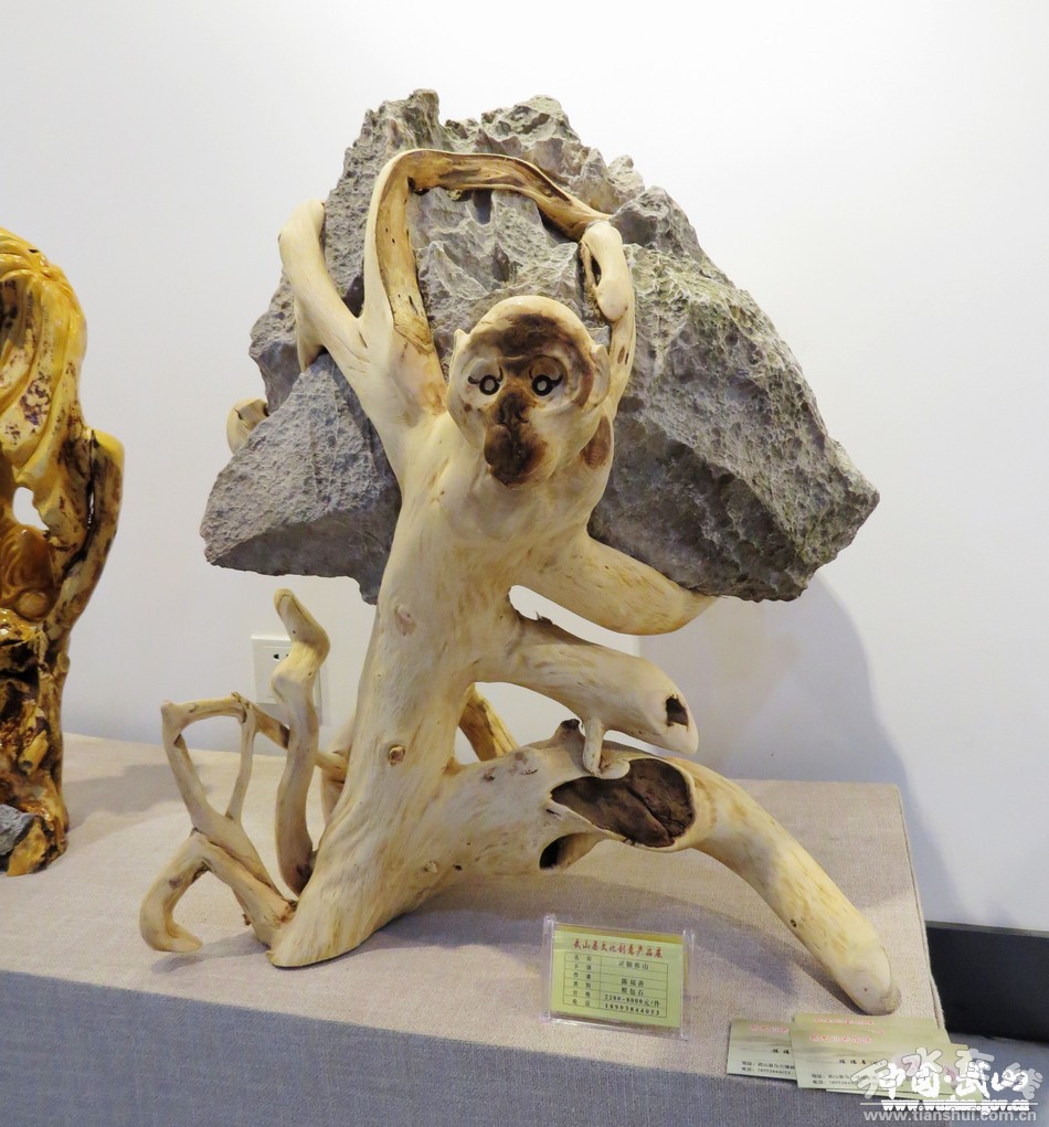 最近幾年,隨著農(nóng)村經(jīng)濟的發(fā)展和活躍,武山根雕藝術又有新的發(fā)展,溫泉、龍臺、馬力、樺林等地根雕藝人創(chuàng)造出了許多新產(chǎn)品。其中馬力根雕奇石藝人陳福善的“靈猴移山”根包石作品,巧籍天然,因材施藝,使奇石的“奇”與根雕的“美”完美結合,渾然一體,堪稱近年武山根雕藝術之極品。