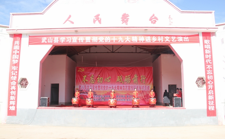 李菊霞在講話中指出,黨的十九大是在全面建成小康社會決勝階段、中國特色社會主義進入新時代的關(guān)鍵時期召開的一次十分重要的大會,認真學(xué)習(xí)宣傳貫徹黨的十九大精神,是當(dāng)前和今后一個時期的首要政治任務(wù)。文藝宣傳隊進鄉(xiāng)村活動是全縣學(xué)習(xí)宣傳貫徹黨的十九大精神的一項重要活動,各鄉(xiāng)鎮(zhèn)、各單位要以這次活動為契機,聯(lián)系廣大干部群眾思想和工作實際,充分利用各種宣傳形式和有效措施,推動黨的十九大精神進企業(yè)、進農(nóng)村、進校園、進社區(qū)、進軍營、進網(wǎng)絡(luò),激勵廣大干部群眾不忘初心、砥礪前行,以實際行動和良好的工作成績推動十九大精神落地生根,為加快脫貧攻堅、全面建成幸福美好小康武山做出新的貢獻。