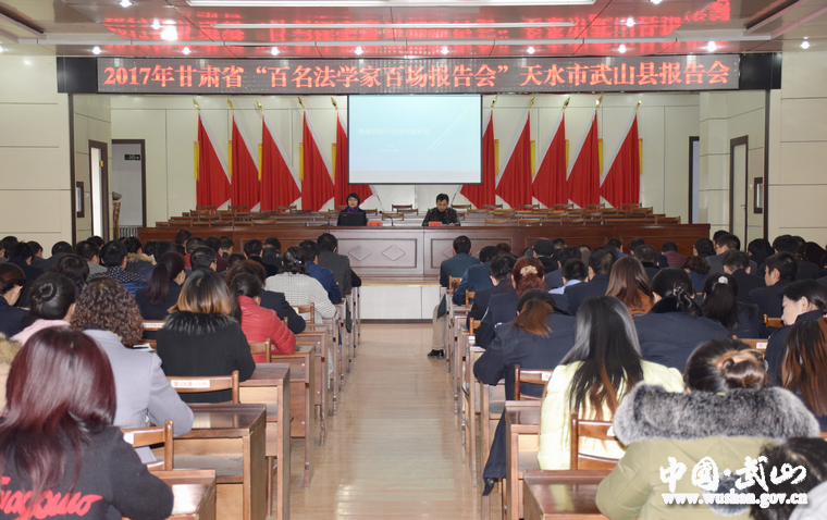 11月17日,武山縣成功舉辦2017年甘肅省“百名法學(xué)家百場報告會”天水市武山縣報告會。中國人民大學(xué)法學(xué)院民商法博士,蘭州大學(xué)法學(xué)院副教授,碩士研究生導(dǎo)師梁琳教授應(yīng)邀進(jìn)行了講座。縣委常委、政法委書記王志軍主持報告會,各鄉(xiāng)鎮(zhèn)分管領(lǐng)導(dǎo),綜治干事;綜治成員單位分管領(lǐng)導(dǎo);縣法院、縣檢察院、縣公安局、縣司法局分管領(lǐng)導(dǎo)及有關(guān)同志,以及部分婦女代表,共計200余人參加了報告會。