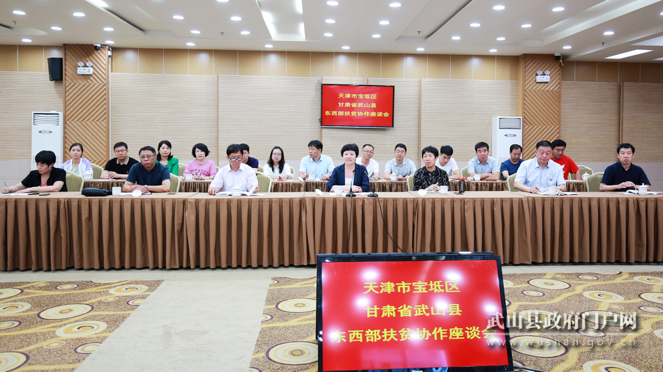 7月2日,天津市寶坻區(qū)政府副區(qū)長陳秀華帶領區(qū)民政、人社、區(qū)委黨校相關負責人及寶坻區(qū)厚道商群企業(yè)家代表到武山縣考察對接東西扶貧協(xié)作工作?h委副書記何敬忠,縣委常委、副縣長李慶山,副縣長李康寧參加考察對接活動。