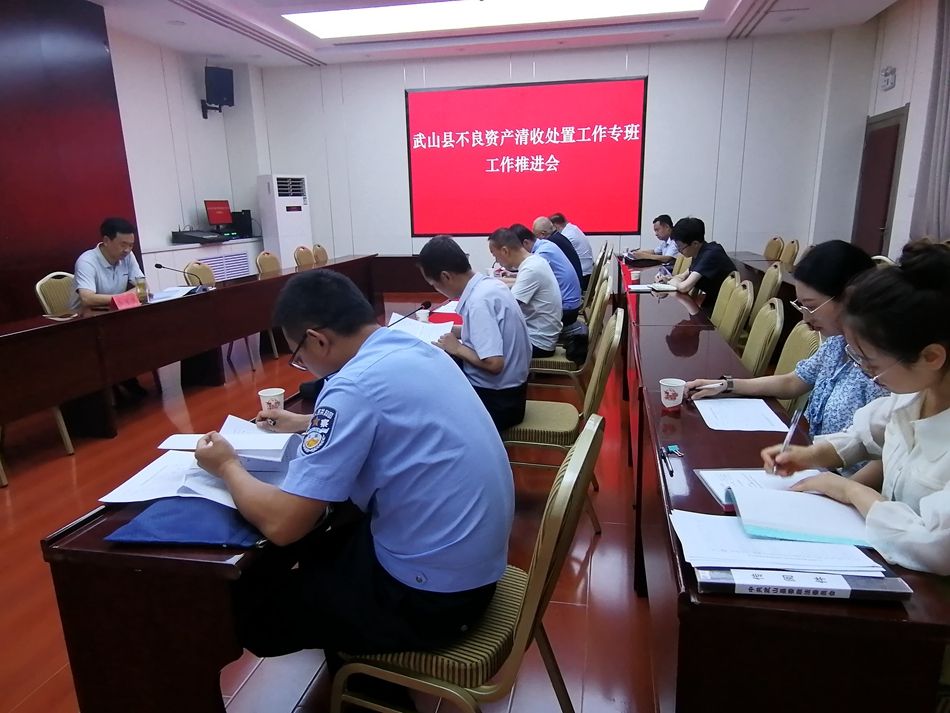 8月7日,武山縣召開不良資產(chǎn)清收處置工作專班工作推進會?偨Y(jié)前7個月武山縣不良資產(chǎn)清收處置工作進展,分析研究問題短板,對下一階段工作進行再安排、再部署,確保今年全縣不良資產(chǎn)清收工作任務(wù)全面完成,順利實現(xiàn)高風(fēng)險機構(gòu)“摘帽”?h委常委、政法委書記令軍強主持會議并講話。