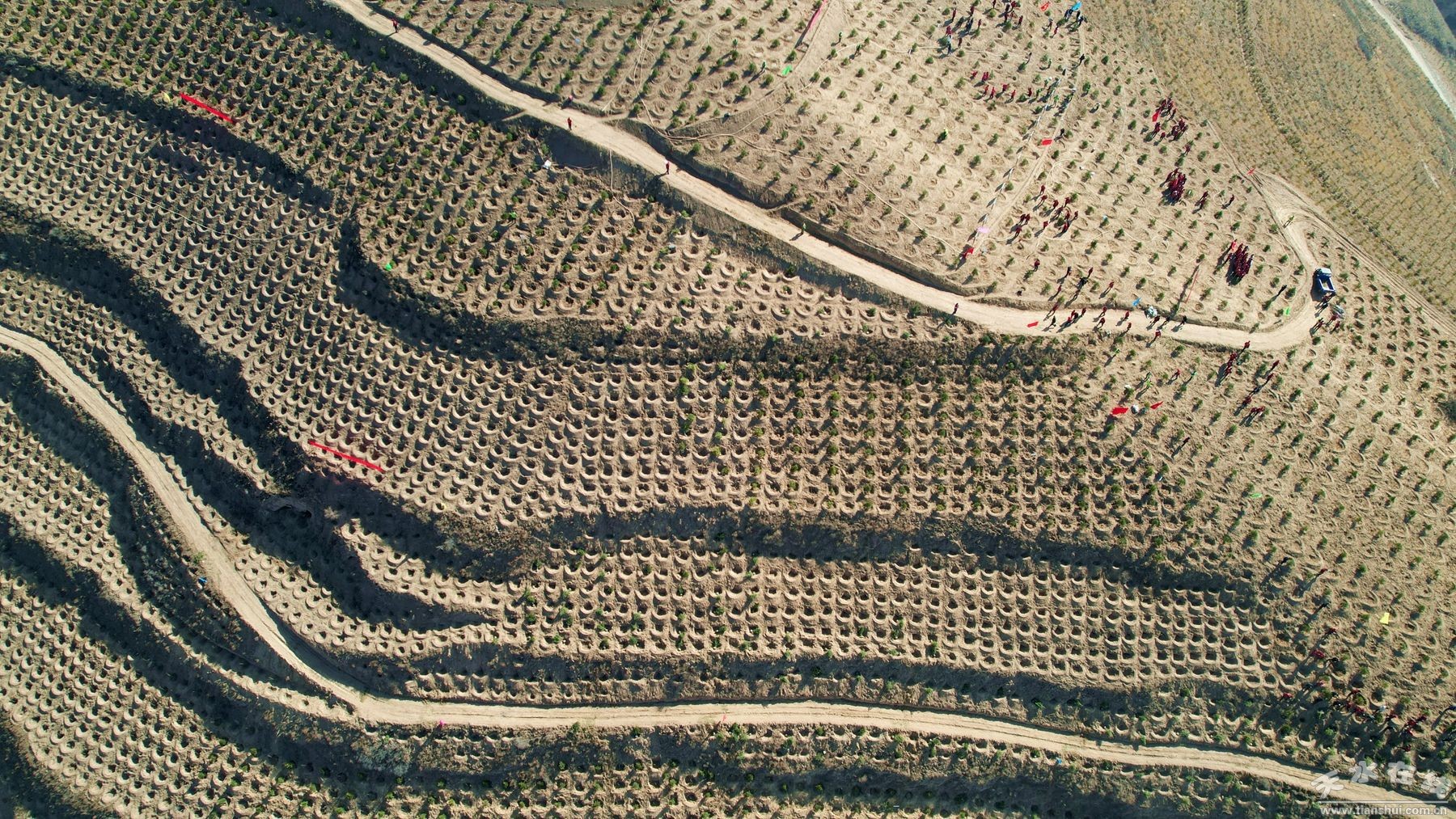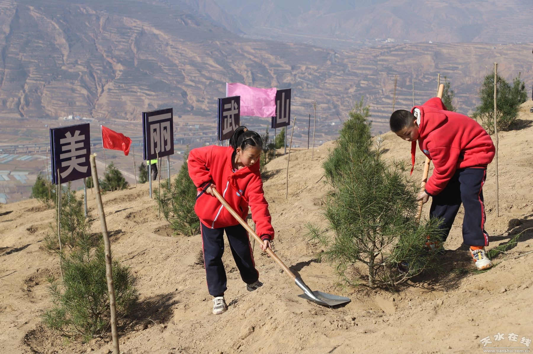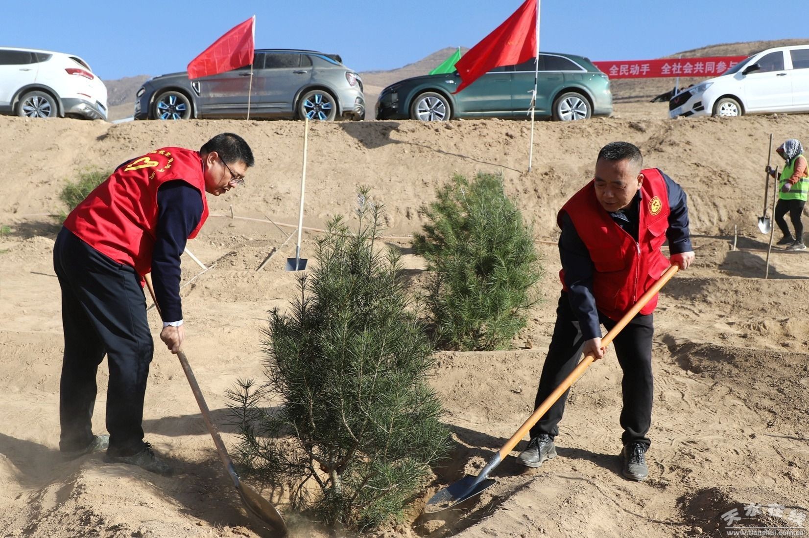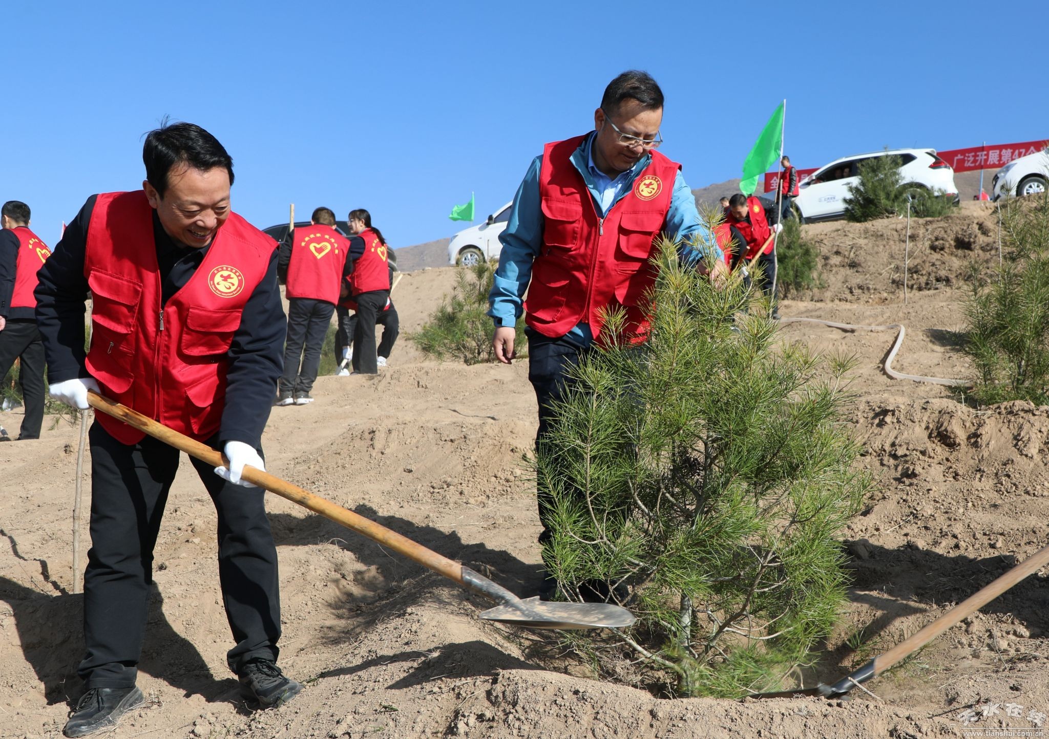 植樹現(xiàn)場,王新強(qiáng)等縣領(lǐng)導(dǎo)與來自鄉(xiāng)村、社區(qū)、學(xué)校、企業(yè)及政府部門的近萬名干部群眾、勞動模范、婦女、學(xué)生和青年志愿者代表,揮鍬培土、提水澆灌,共栽植云杉、油松、白皮松、刺槐等樹種20萬余株,完成植樹2000畝,以“人不負(fù)青山,青山定不負(fù)人”的生動實(shí)踐,激活了黃土高原的綠色希望。